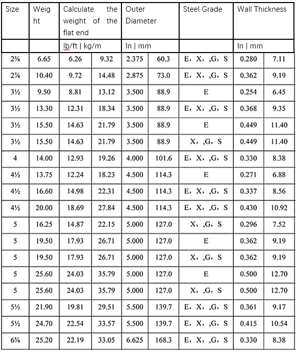 Here are the weight of drill pipe, include: 2 3/8, 2 7/8, 3 1/2, 4, 4 1/2, etc.